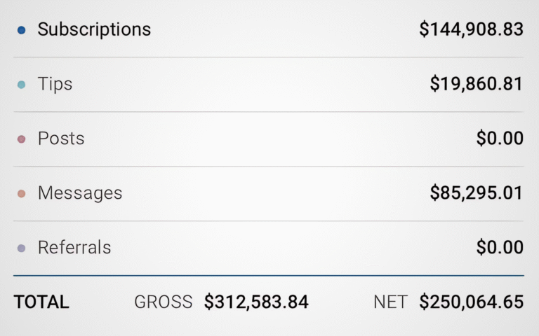 We managed daily uploads, fan chats, upsells, and premium sales letting this creator grow income passively while focusing only on creating a few videos weekly.